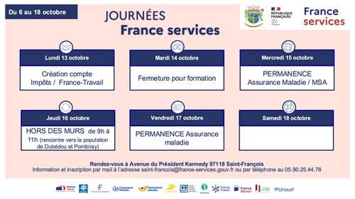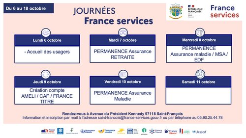 À l’occasion de l’opération nationale "Les Journées France Services", découvrez le programme des actions de la Maison France Services de Saint-François durant le mois d’octobre