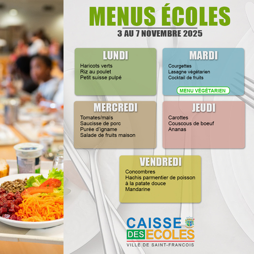 Découvrez le menu des écoles de Saint-François pour la semaine du 3 au 7 novembre 2025