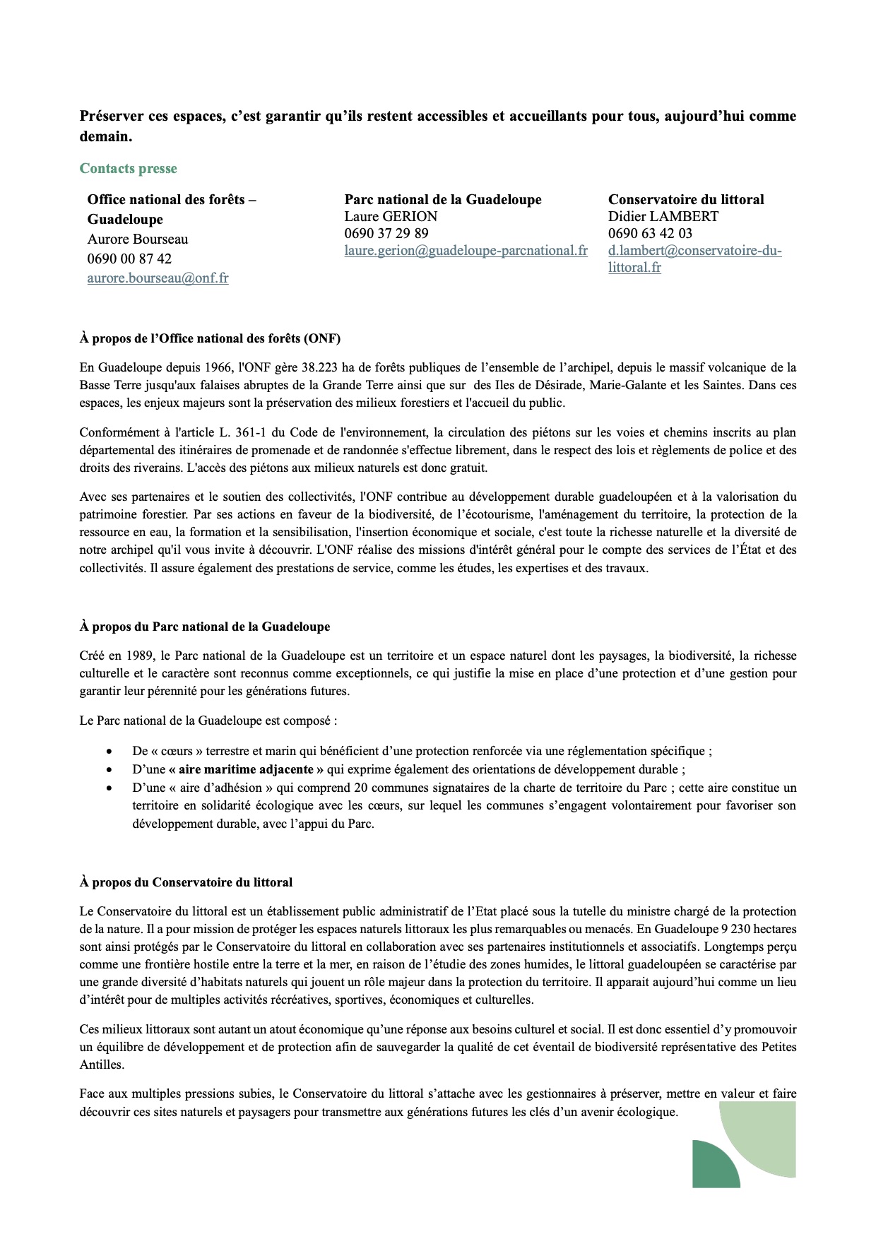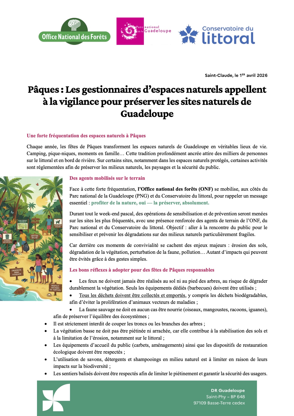 La ville de Saint-François, l’Office National des Forêts, le Conservatoire du Littoral, et le Parc National de la Guadeloupe, ensemble pour un appel à la vigilance à l’occasion des fêtes de Pâques.