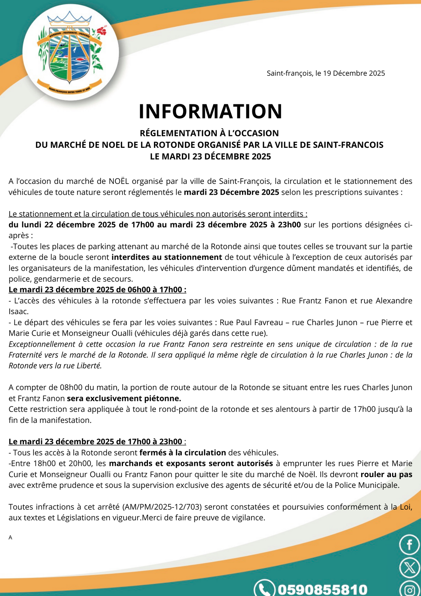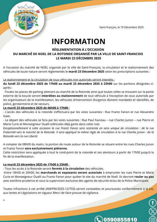 Réglementation de circulation et de stationnement des véhicules à l’occasion du marché de noël organisé à la Rotonde le Mardi 23 Décembre 2025.