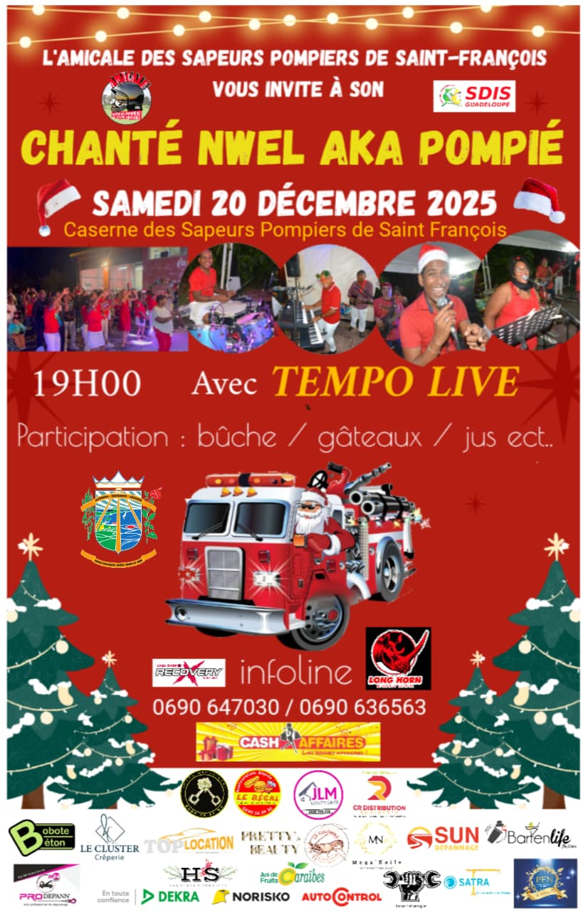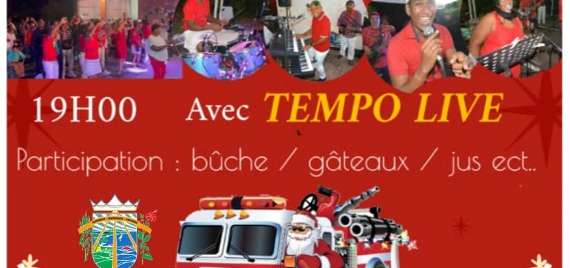Chanté Nwèl des pompiers de Saint-François à la caserne avec le groupe TEMPO LIVE.