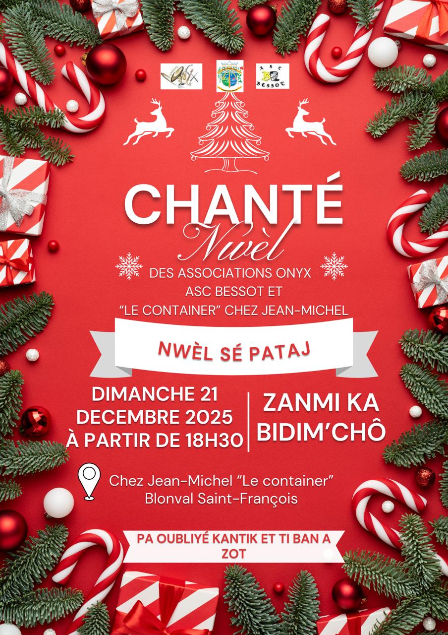 Chanté Nwèl avec les associations ONYX, ASC BESSOT, ZANMI KA et BIDIM’CHÔ, chez Jean-michel "LE CONTAINER" à Blonval.