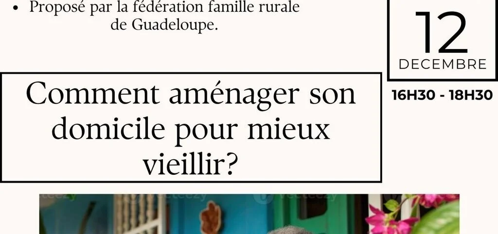 🏠Comment aménager son domicile pour mieux vieillir ?🏡 👉Ce sera le thème abordé Vendredi 12 Décembre à partir de 16H30 à la Rotonde des Arts de Saint-François. 👉Entrée libre ☎️Infoline : 0690 84 45 68