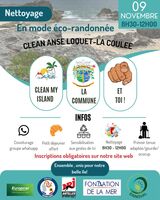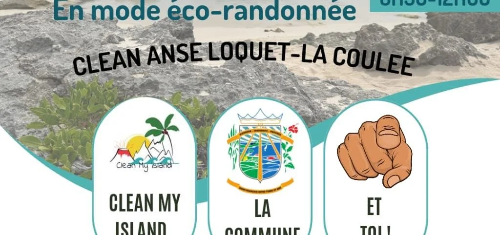 <L’association CLEAN MY ISLAND, en partenariat avec la ville de Saint-François, organise un opération de collecte de déchets en mode éco-randonnée le Dimanche 9 Novembre à l’Anse Loquet, La Coulée, route de la Pointe des Châteaux.