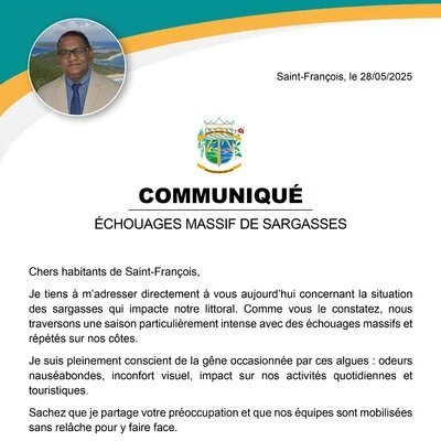 Le maire de Saint-François, M. Jean-Luc PERIAN informe la population et les usagers que la...