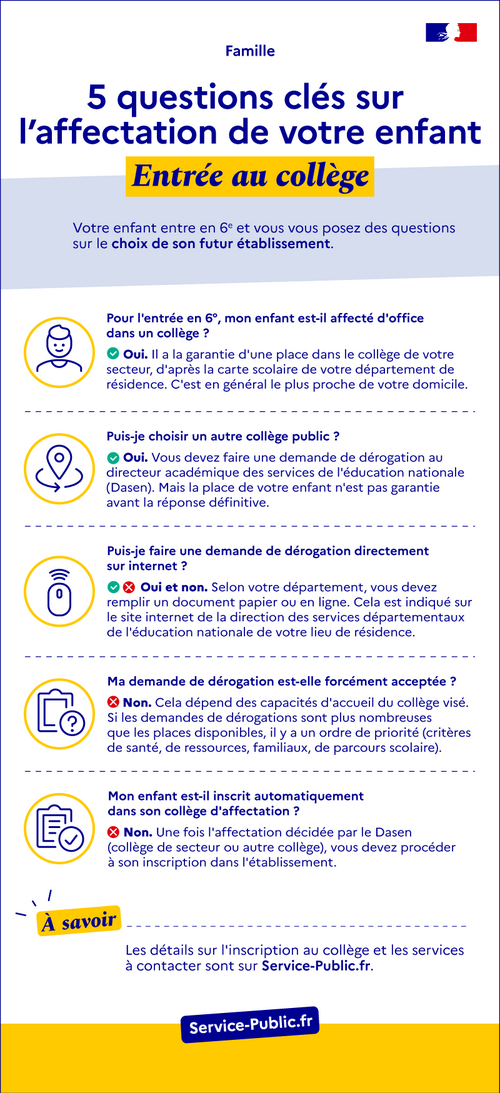 Affectation d'un enfant au collège : réponses à 5 questions clés (infographie)